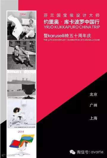 1964年由芬兰知名家具设计大师约里奥·库卡波罗(1933-)设计的卡路赛利椅(Karuselli Chair)将在2014年问世整整50周年,卡路赛利椅生产商上海阿旺特公司将在2014年全球限量生产并发售50张卡路赛利纪念版座椅。