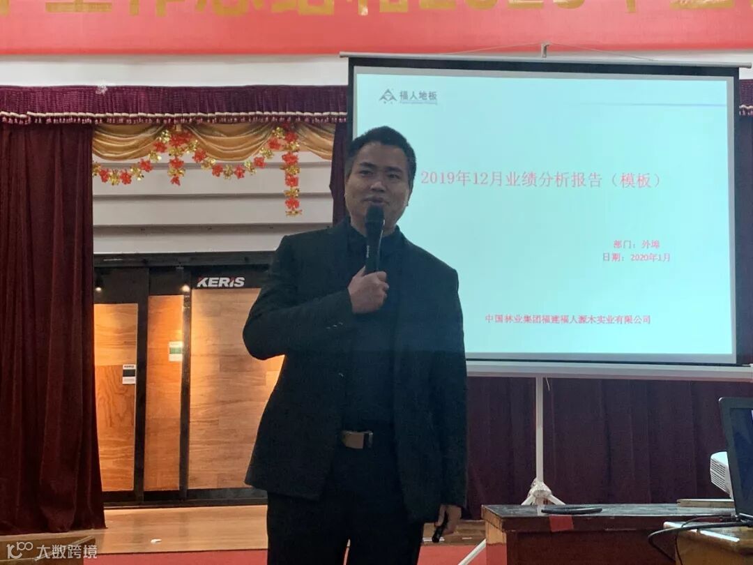 福人地板销售总监石开洪对2019年销售工作进行总结。石总总结了2019年福人地板取得的成绩、出现的问题、以及2020年度的工作规划与部署。