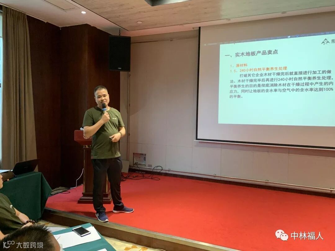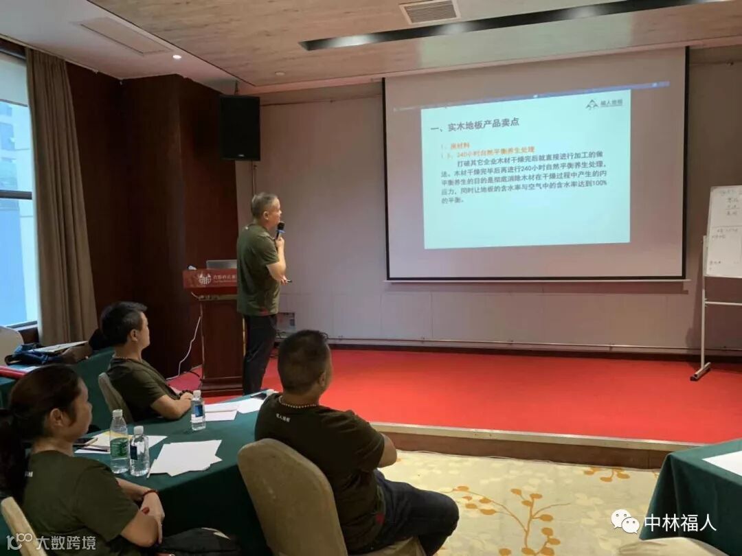 福人地板销售副总监洪鼎忠进行实木产品知识及售后服务培训。洪总从实木地板生产流程、生产卖点、木材种类等进行实木地板知识培训。其后又进行了了实木安装、实木售后处理及保养维护等知识的培训。