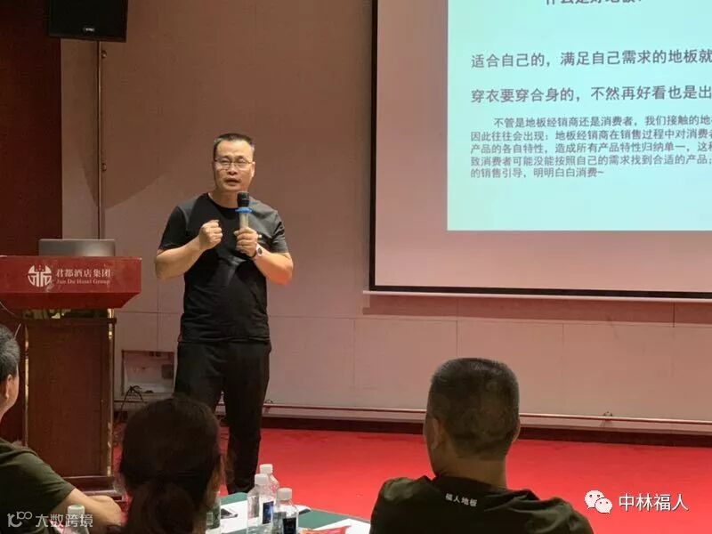 随后有着几十年一线地板销售经验的华北区经理魏东亮对经销商进行强化地板知识培训。魏总从福人地板四十年的国企历程、企业文化、产品特性、产品实验等方面阐述福人地板的卖点与特性,既贴合实际又有所创新,给予湖南经销商朋友满满的销售知识。