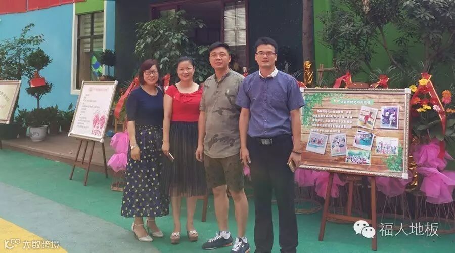 右一:福人地板江西大区经理刘伟;左一:新余福人廖总;右二:幼儿园负责人;左二:幼儿园园长