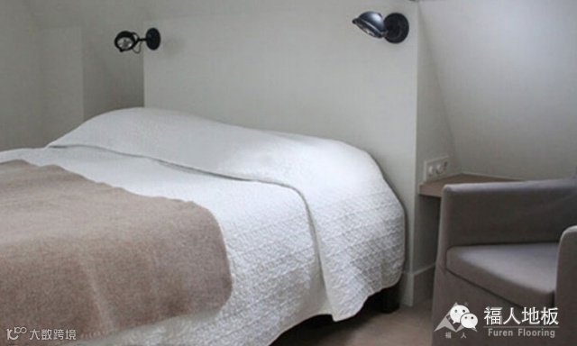 ,关掉所有的灯,让你的卧室处于黑暗中。从睡眠的视野中移走所有发光的电子用品,比如手机、笔记本电脑。这款简洁的卧室设计,摒弃了繁琐的装饰,仅用简单的白色与福人帝王橡木地板的原木色搭配,打造出一个完全