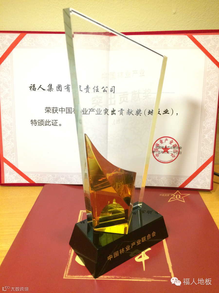 经过激烈的角逐和公平公正的评选,中国林业产业联合会特授于:福人集团有限责任公司荣获中国林业产业突出贡献奖(地板业)。