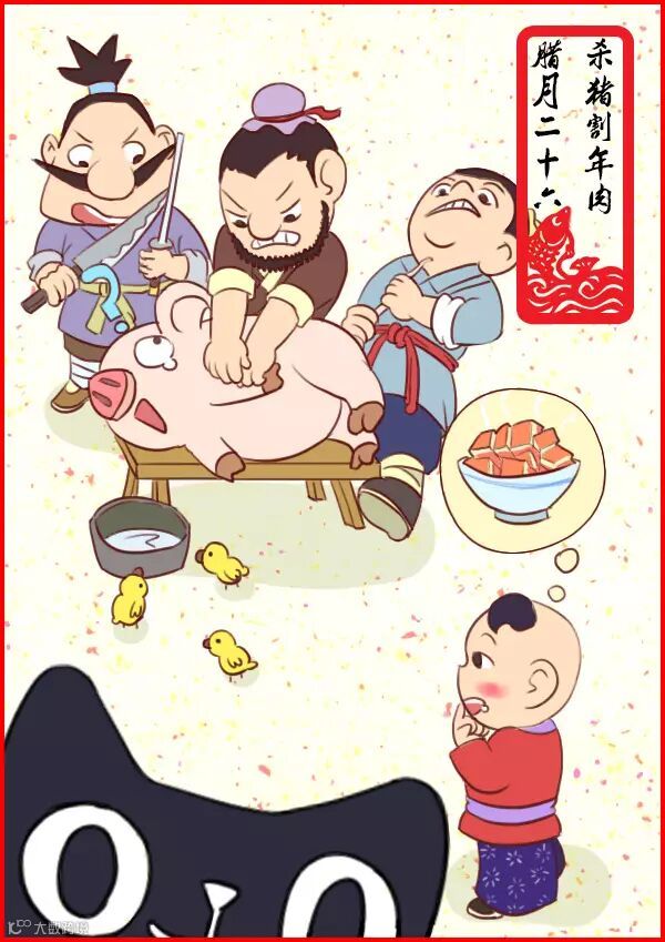 鸡音携“吉”,古又通“急”。杀公鸡是指从这一年开始年货要办完了,由于制作年货还需要时间,再不动手就来不及了,所以这天是查漏补缺完成采购的时间。