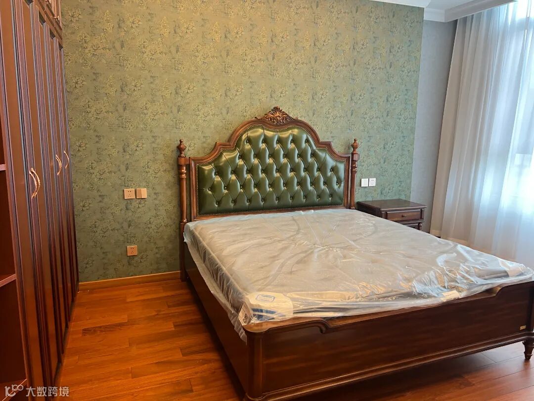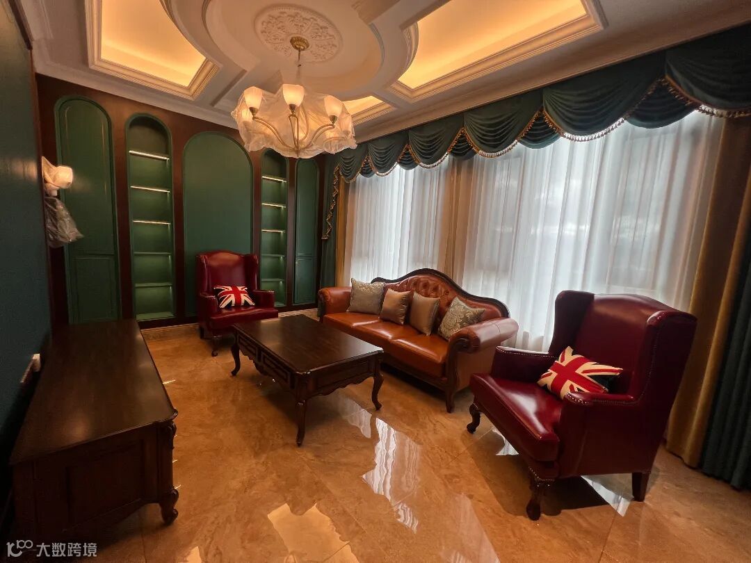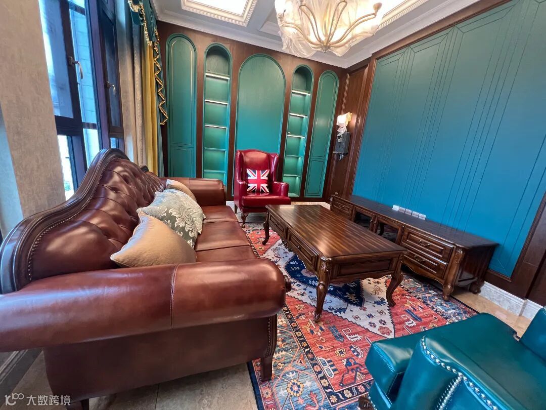 装修如此,家具亦是如此,客厅的美式复古沙发以它独特的魅力诉说着岁月的记忆。实木的棕色框架勾勒出稳重与坚固的气质,仿佛见证了岁月的流逝,而墨绿色皮布则为其增添一份神秘与优雅。棕色实木的纹理和色彩交相辉映,带来自然的温暖氛围,更散发着典雅的气息。