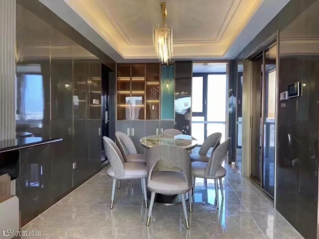 高级水晶吊灯、祥云白大理石的温润纹理,清冽雅致,同时融入时代意式时尚的设计,增加整体空间格调,在悄无声息之中,营造出丰富的层次感。
