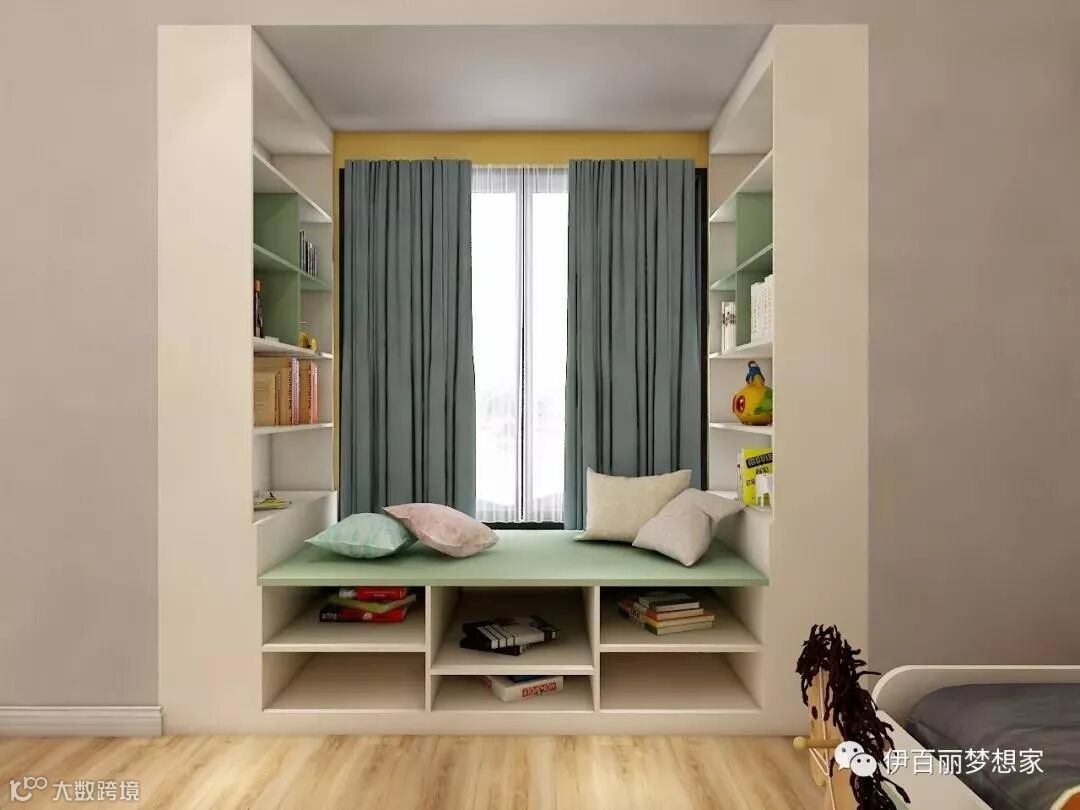 儿童房窗台做榻榻米,上层供玩耍,下层的收纳格即可收纳书籍,小玩具等。