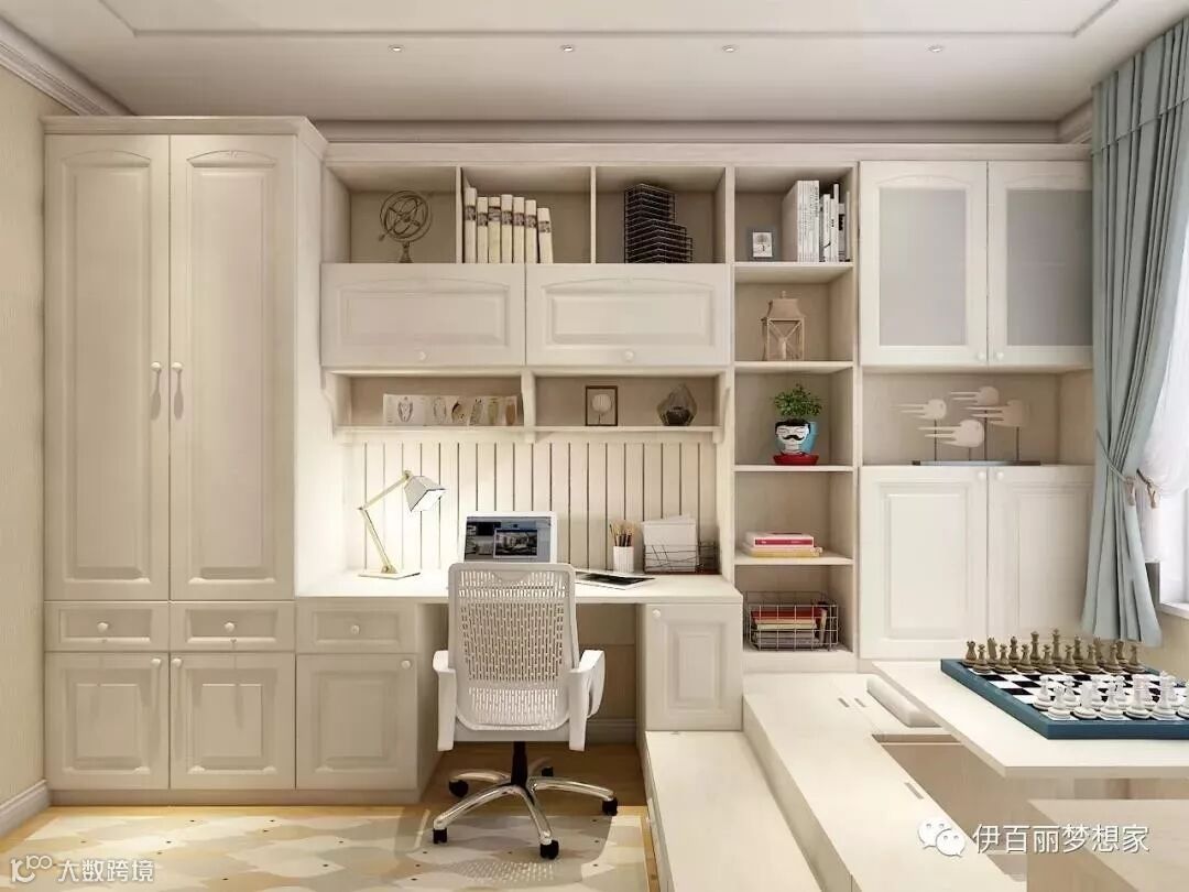榻榻米床配合灵活组合的柜体,全方位实现收纳——榻榻米床、床头柜、飘窗柜、书柜一体化,一次满足睡眠、储物、学习等多重需求。