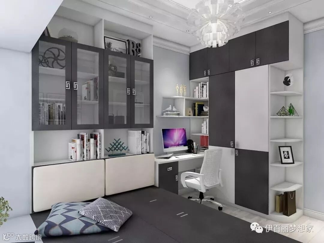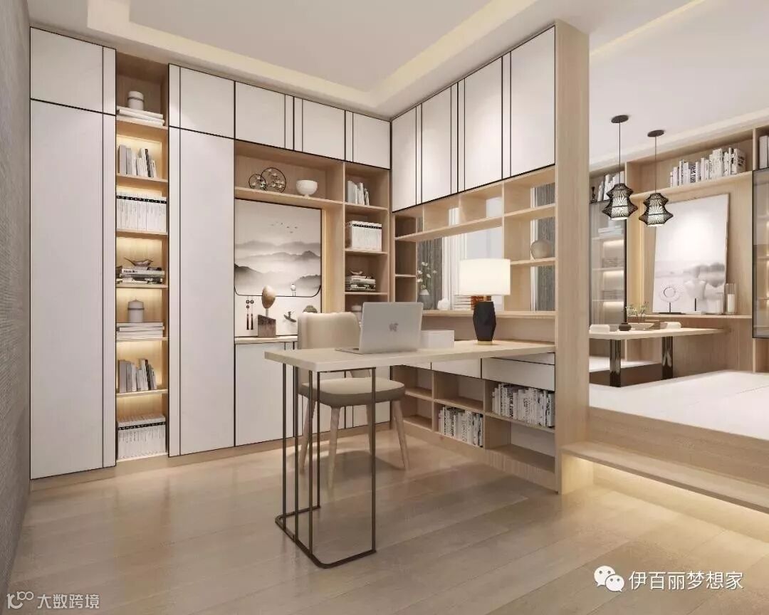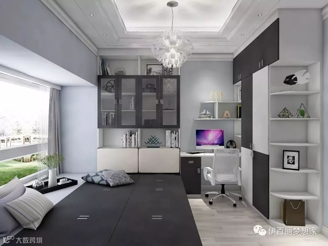 小房间做成榻榻米与衣柜、书柜的组合,床下和墙面都是收纳能手,组合柜还留出独立的学习空间,满分!