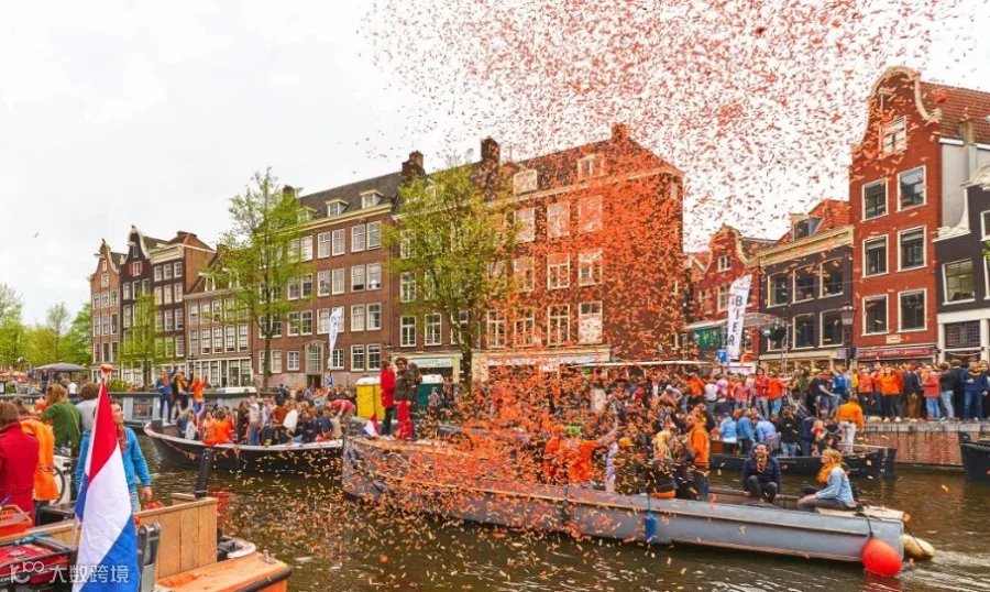 荷兰国庆日,全民身穿橙色服饰狂欢。