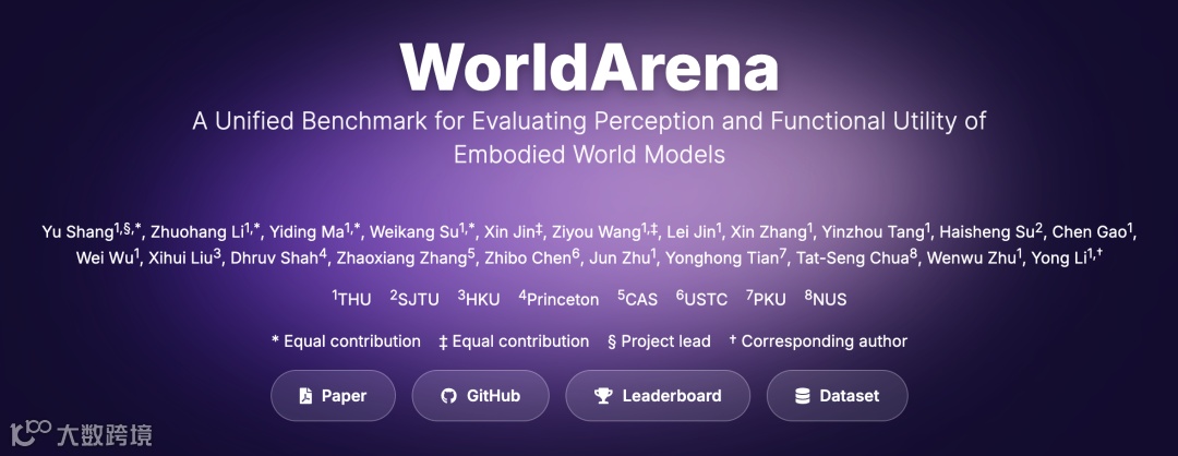 WorldArena由清华大学联合普林斯顿大学、新加坡国立大学等8所国际顶尖高校及科研机构共同构建,通过16项核心指标与3大真实任务,对具身世界模型的感知精度、物理规律理解等能力进行全方位评估。