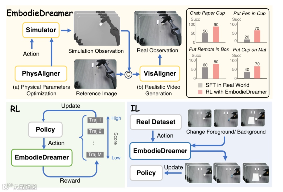 GigaWorld-1采用创新的AC-WM(动作控制世界模型)技术路线,基于极佳视界去年发布的EmbodieDreamer架构深度优化:
