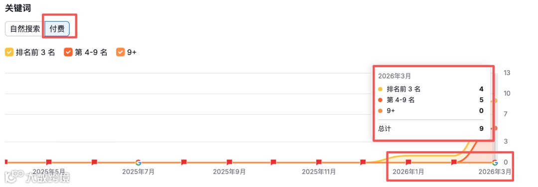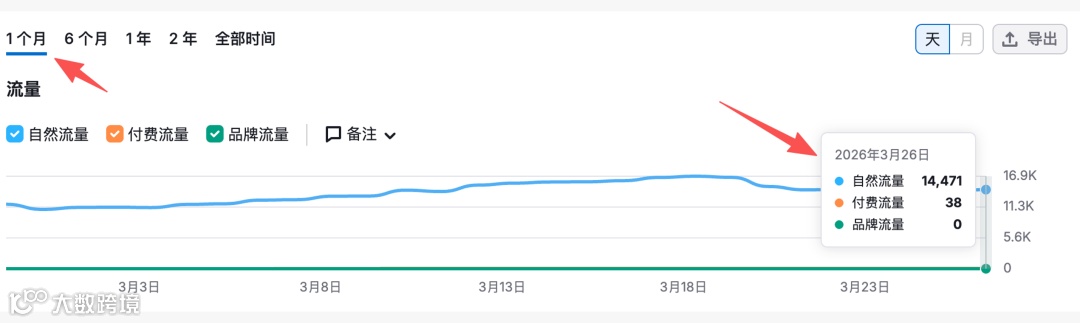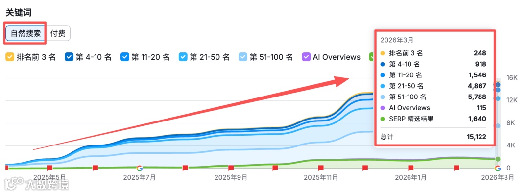 自然流量持续上行无大幅波动,验证SEO健康增长机制,非依赖短期广告投放。