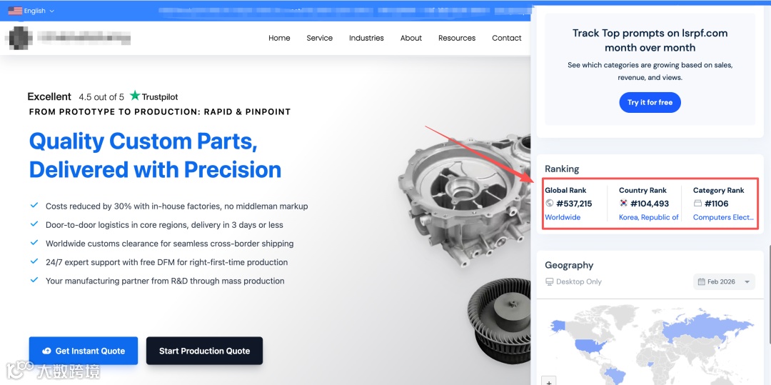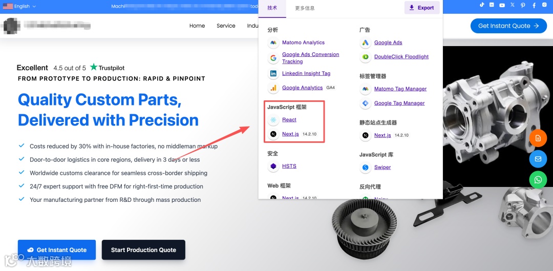 首页通过强CTA按钮、信任评分及交付优势构建转化体系,实现"流量承接-转化"闭环。