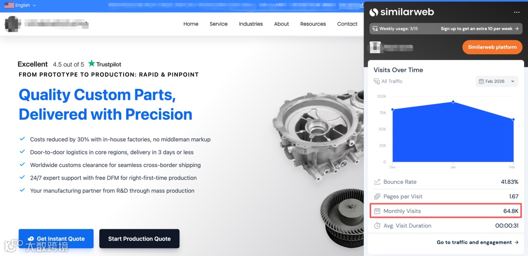 自然流量1.45万+,关键词1.5万+,外链2万+。作为成熟营销型独立站,已形成可持续流量资产。