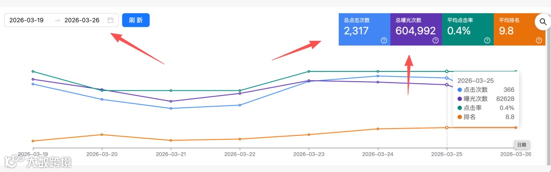 点击量近9000次,平均排名逼近第一页。流量虽有波动但整体上行,核心问题已从"有无询盘"转向"询盘数量"。