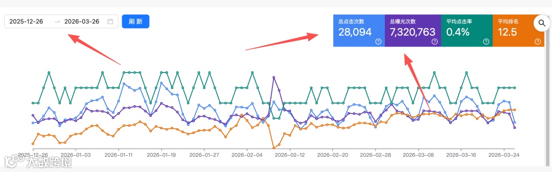 90天内点击量达2.8万次,关键词平均排名升至12位。进入Google首页竞争区间后,询盘转化趋于稳定。