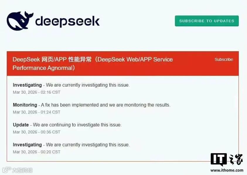 3月29日晚,DeepSeek服务出现大规模访问异常,大量用户反映网页端和App频繁提示"服务器繁忙"或无法响应,相关话题迅速登上微博热搜。3月30日上午,记者打开DeepSeek发现问题仍未修复,用户提问无法发出,显示“请检查网络后重试。”截至发稿,DeepSeek尚未对本次故障进行官方回应。