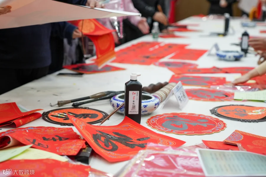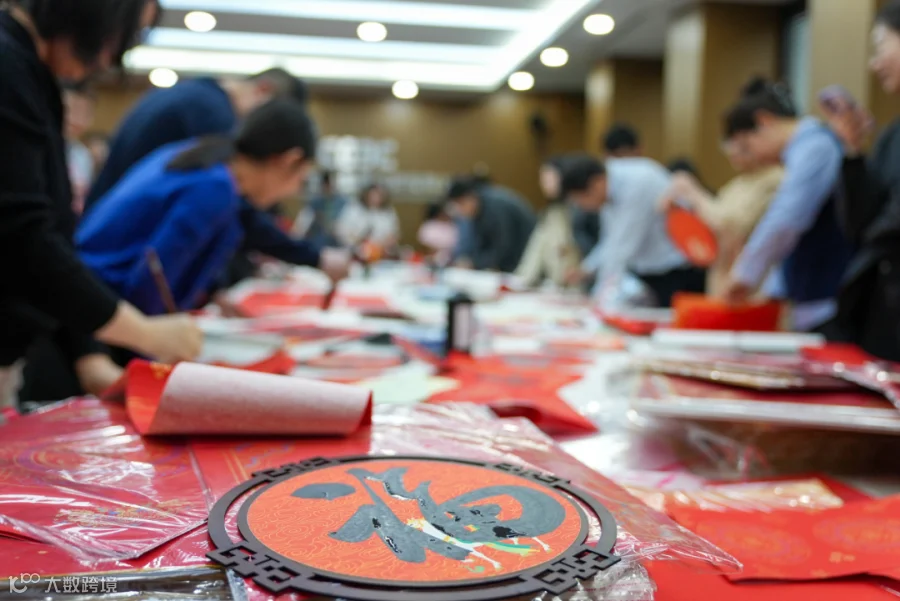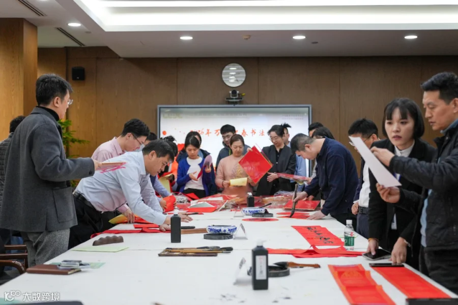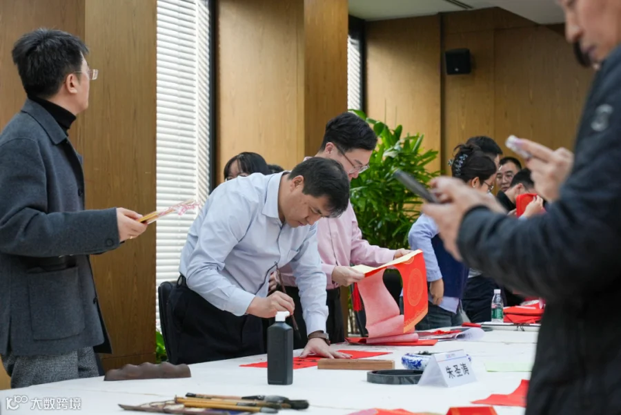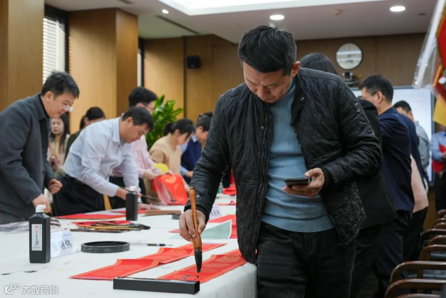 活动现场翰墨飘香,气氛热烈,中国能建书法美术协会副主席、投资公司书法摄影协会主席,投资公司党委委员、纪委书记朱圣涛出席并与北京市书法家协会三位书法家张明伟、宋子君、杨亚伟共同在现场挥毫泼墨,共绘新春愿景。书法家们笔走龙蛇,行云流水,将真挚的祝福与美好的期盼倾注于笔端,创作出600余幅饱含深情与温度的春联和“福”字,为全体干部职工送上了一份充满新春祝福的“文化年货”。