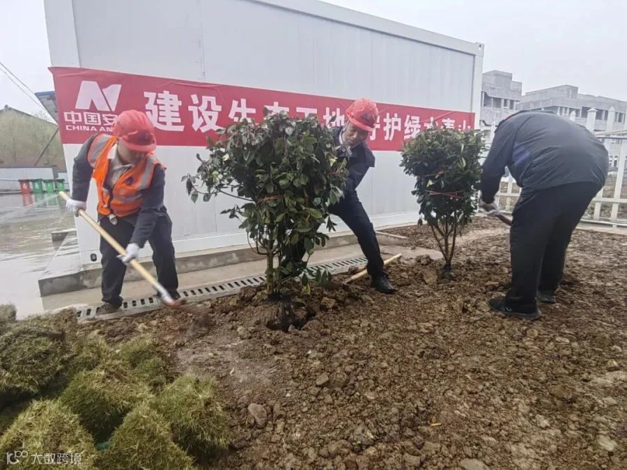 梁平预制菜生产基地项目部根据营区绿化规划,组织开展“建设生态工地、守护绿水青山”主题活动,项目部人员冒着细细春雨,齐心协力植树种草,有效改善营区生态环境,增强团队凝聚力、协作意识和生态环保责任感。