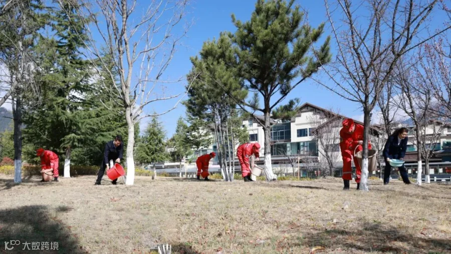 春风催新绿,植树正当时。