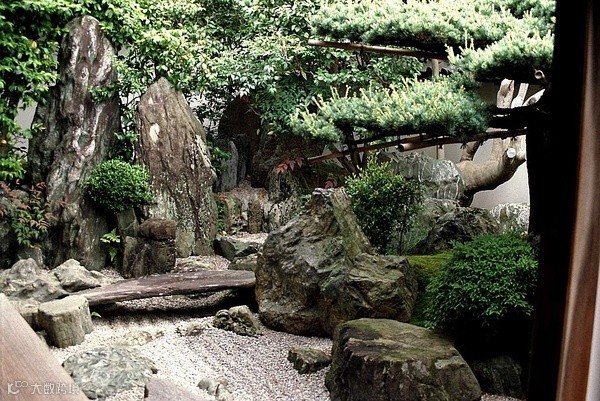 顾名思义,枯山水并没有水,是干枯的庭院山水景观,在一些地方,枯山水庭院内甚至排除了草木。其主要特点,是用山石和白砂为主体,用以象征自然界的各种景观。(金剛峯寺 石庭 )