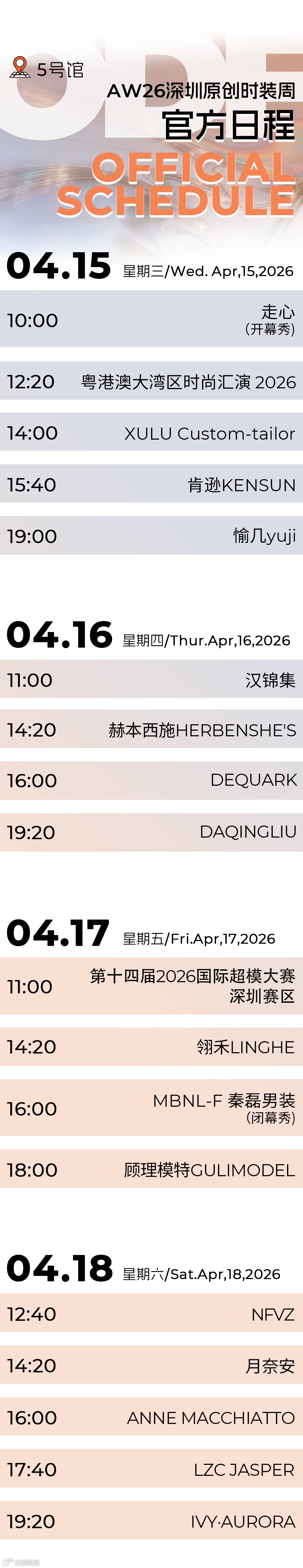 AW26深圳原创时装周「官方秀场日程」正式发布,秀票预约通道同步开启!