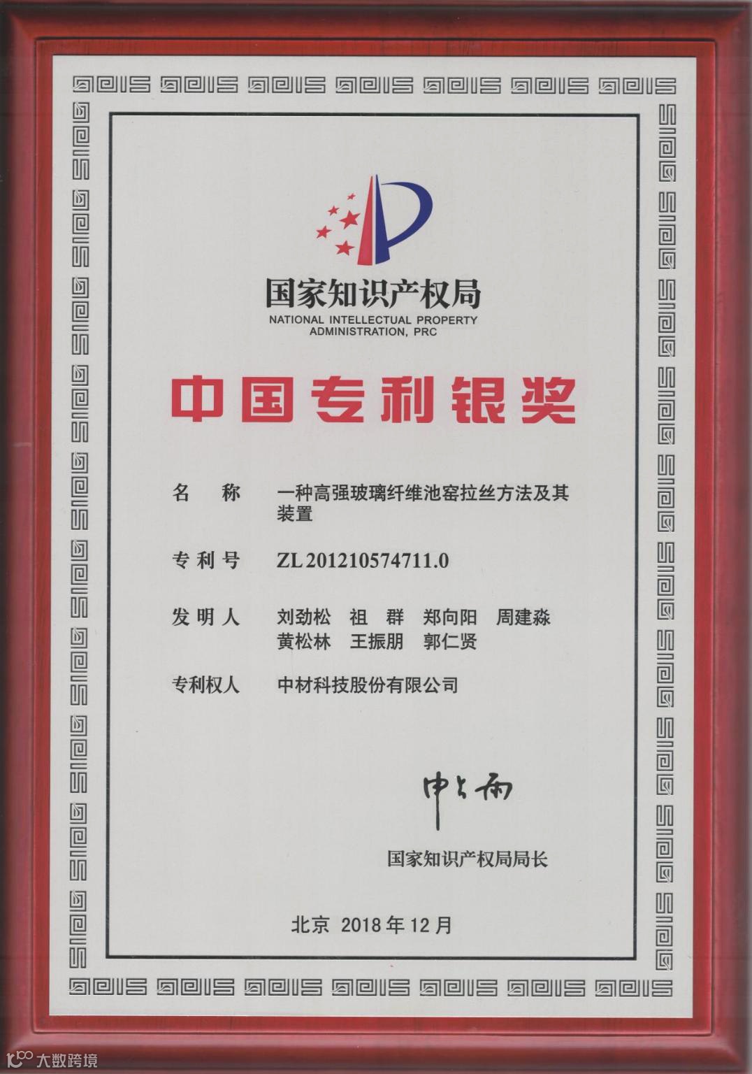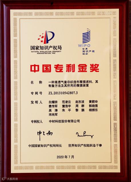 截至2023年底,中材科技累计有效专利115件,其中发明专利81件。“一种高透气量非织造布覆膜滤料、其制备方法及其所用的覆膜装置”发明专利2020年荣获第二十一届中国专利金奖,“一种高强玻璃纤维池窑拉丝方法及其装置”发明专利2018年荣获第十九届中国专利银奖。2022年,中材科技被认定为国家知识产权示范企业。