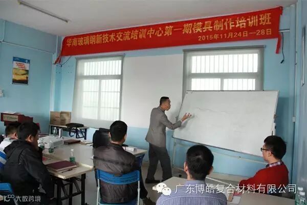 2015年11月24日-28日,为期五天的中国不饱和聚酯树脂行业协会—华南玻璃钢新技术交流培训中心第一期玻璃钢模具制作培训班圆满完成。本期培训由中国不饱和聚酯树脂行业协会—华南玻璃钢新技术交流培训中心与广东博皓复合材料有限公司联合举办,原中国玻璃钢协会模具制作资深讲师谭永枝老师主讲,共有22位学员参加,分别来自山东、福建、陕西、广西,及广东珠三角等地。广东博皓复合材料有限公司技术部全程协助。