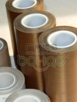 采用进口高强度玻璃纤维纱编织而成的各种厚度的基布,浸渍铁氟龙(PTFE)树脂,进行高温硅胶处理而成的涂布,简称铁氟龙(PTFE)胶带。