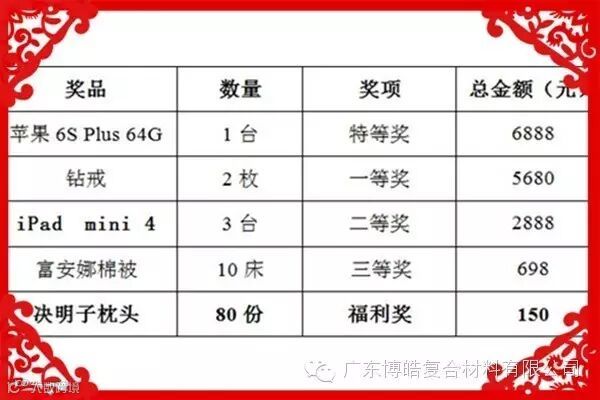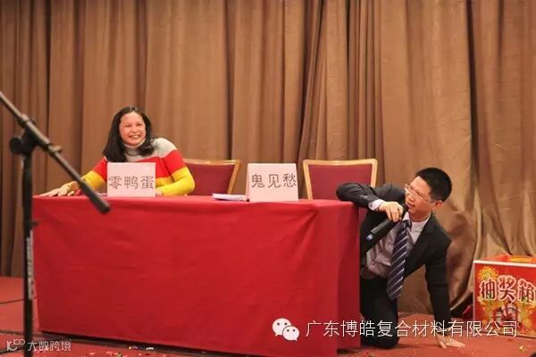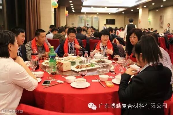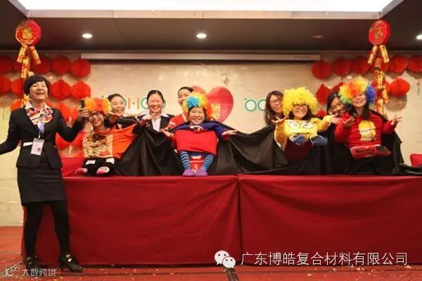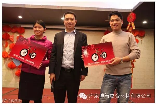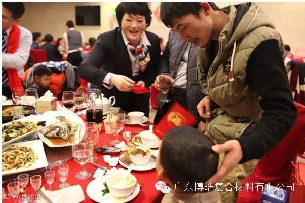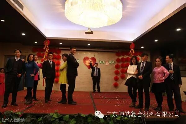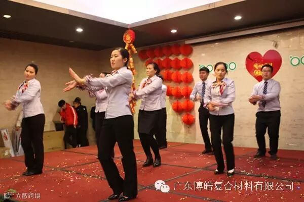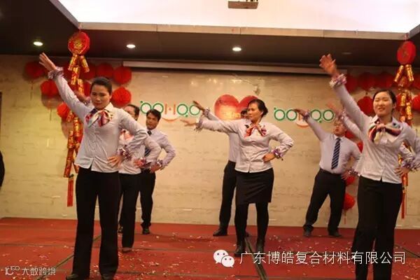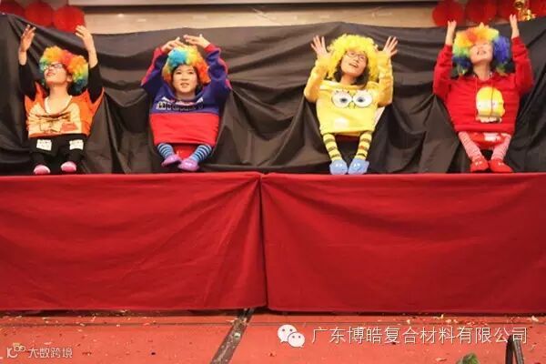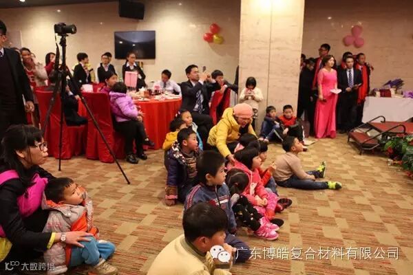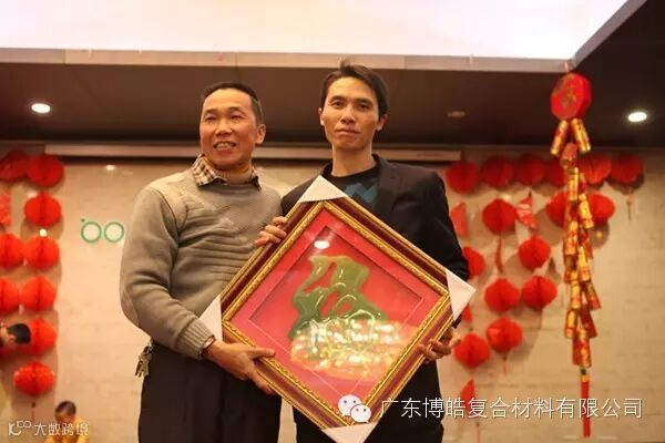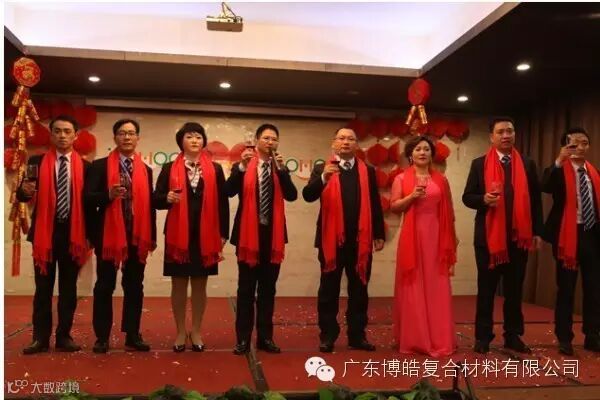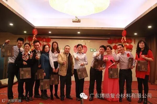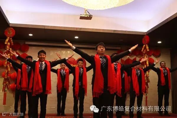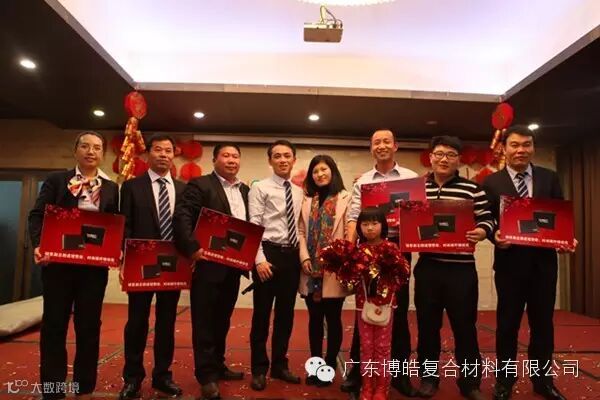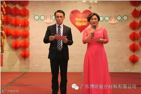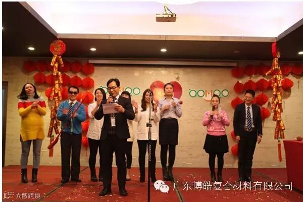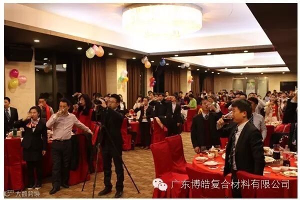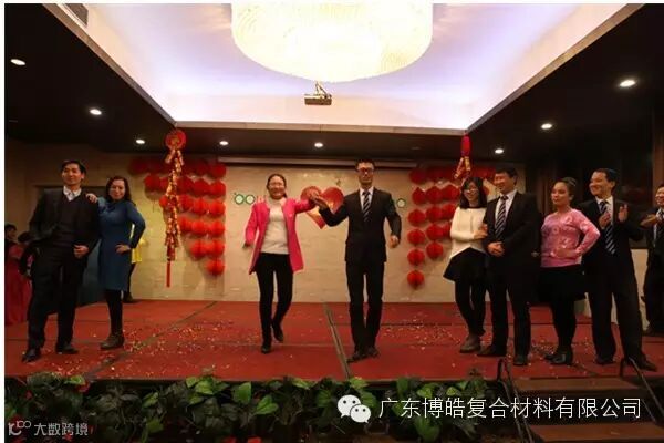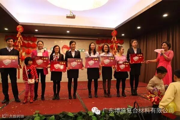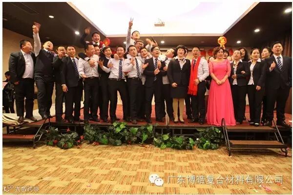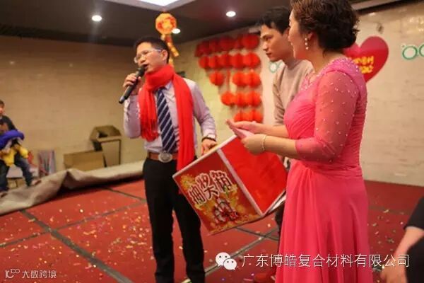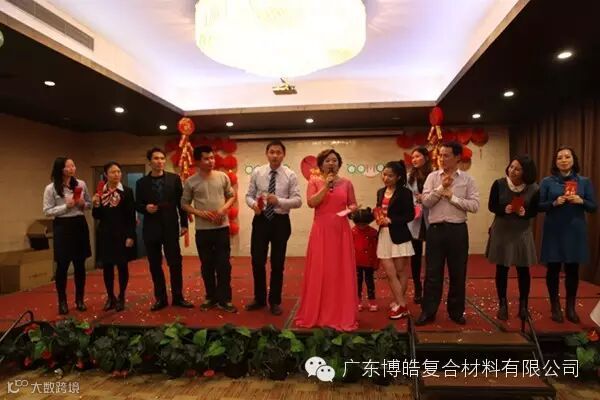 广东博皓复合材料有限公司“同心同行 幸福2016”主题新年联欢晚会安排在番禺海鲜码头酒店举行,宴席12桌,邀请了所有同事及部分家属。晚会所有节目都是由博皓人自编自导自演,幽默风趣,动感十足。年度各大奖项获奖人员进行抽奖及颁奖。除了公司提供的奖品外,公司领导层还自费赞助新年奖品,使得总体中奖率提升到100%,更有以董事长为主导、总经理及各部门领导,事业部经理为主力军的众筹团队现场筹集现金7800元,最后重新抽奖数轮,均以现金红包的形式重新产生一批幸运者,现场气氛极度热烈,开心!高潮迭起,几度到达失控边缘。