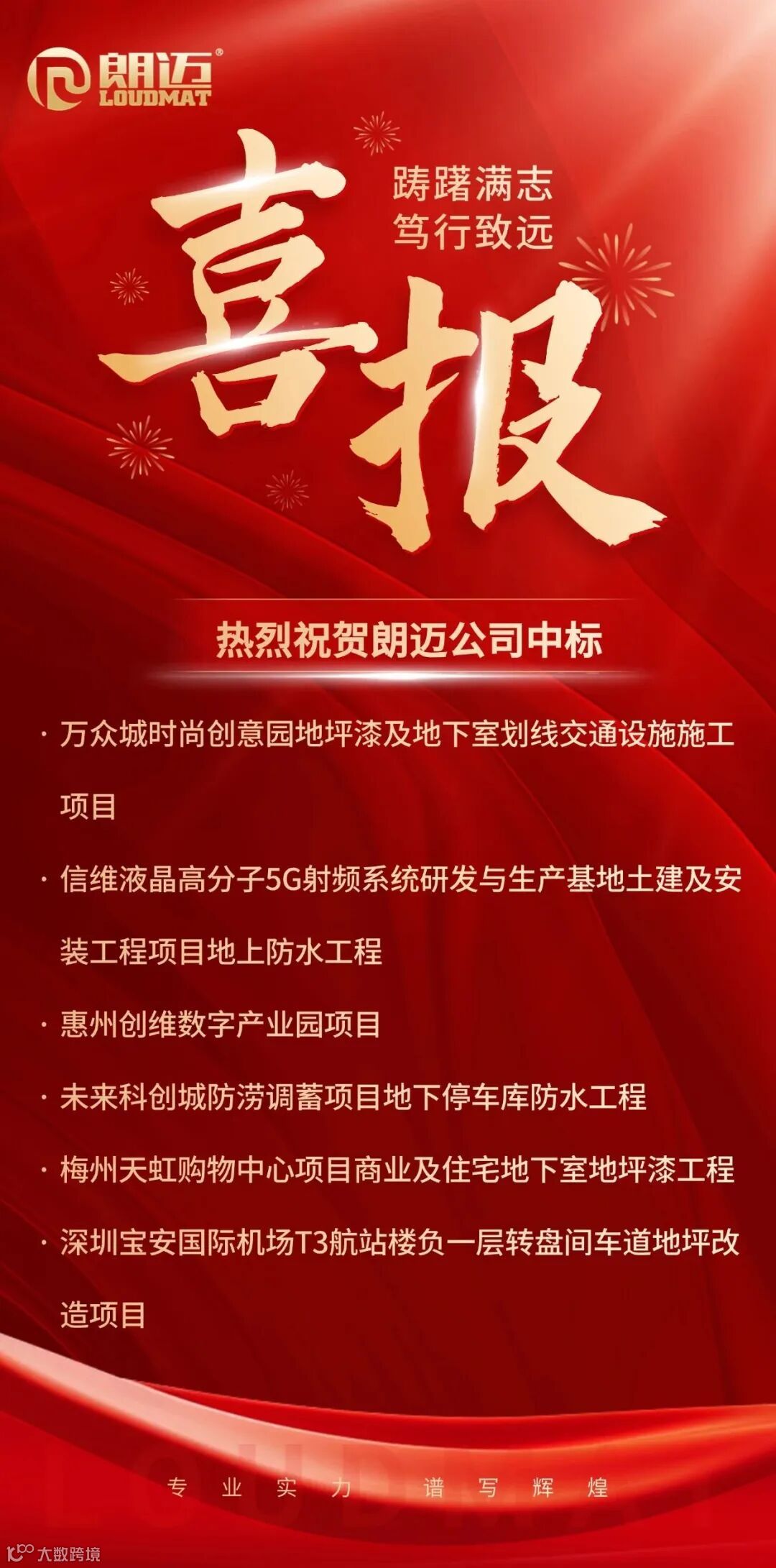 朗迈公司2025年承接了多项重点工程,涵盖智慧工业、教育、商业地产、食品产业、低空经济等多领域。佛山朗华工业供应链智慧科技园、西安长安大兆预制菜加工基地、襄阳职业技术学院东津校区、仙居未来科创城、英威腾中山新能源产业基地等项目,获得朗迈提供的高性能、高效化的地坪、防水解决方案。