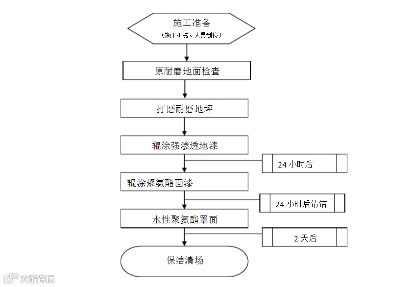 (1)用2m靠尺和塞尺全面检测地面平整度,明确标示高凸之处。用吸尘研磨机配金刚磨块打磨混凝土基面,清除水泥浮浆和水泥疤,并将标示的高凸之处磨平。