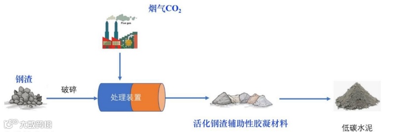 济源中联利用冶金固废钢渣,捕集水泥窑烟气中的CO2,通过特殊的工艺和特种催化剂进行处理,并将处理后的钢渣用作混合材生产低碳水泥。一方面固化了烟气中的CO2,达到碳减排的目的,另一方面通过反应消除了钢渣中游离的氧化钙、氧化镁,解决了安定性问题,同时能提高钢渣的活性,使钢渣的利用价值得到提升,为钢渣的高附加值利用创造了条件。
