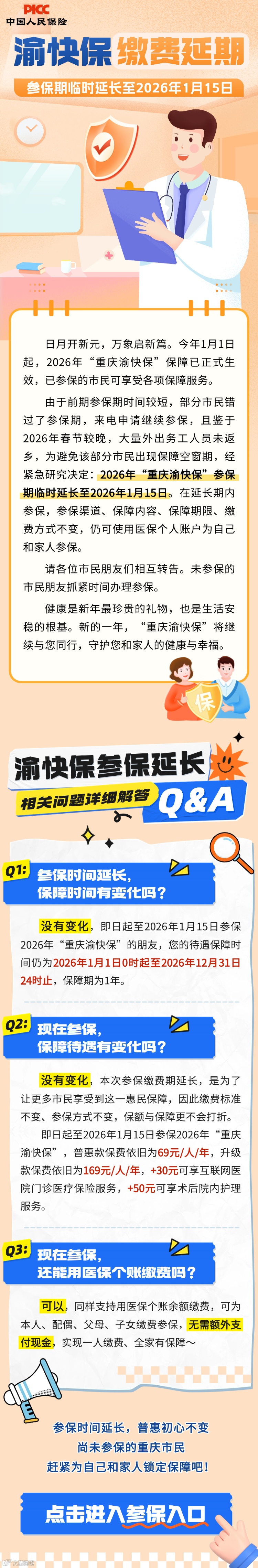抓紧时间!“重庆渝快保”参保期延长啦~