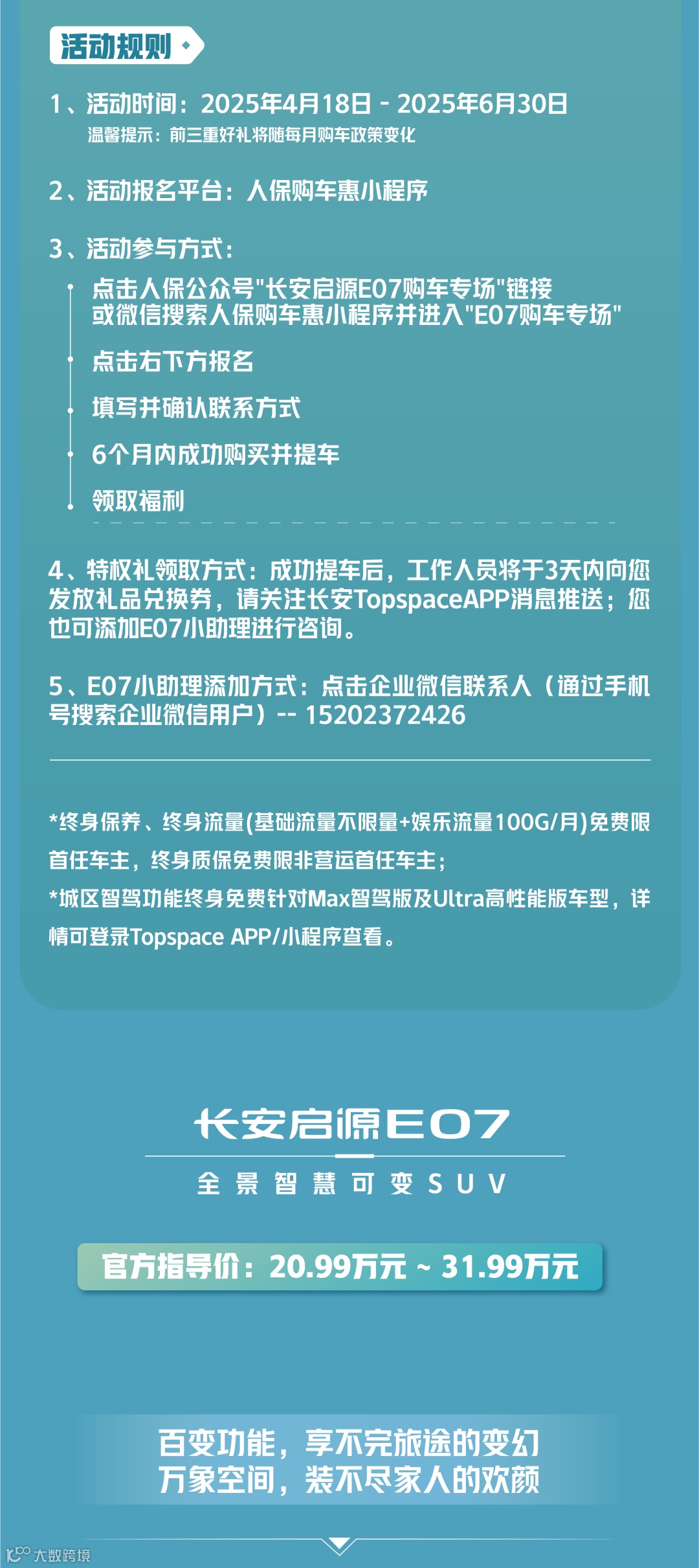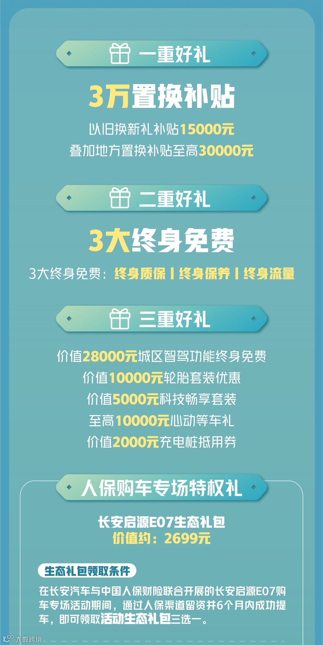 春日豪礼 再升E级丨长安启源E07为人保车主带来多重福利!