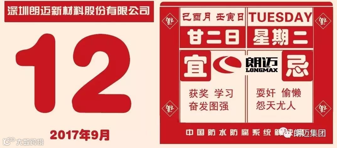 2017年9月12日是良辰吉日,【宜】获奖,学习,奋发图强;【忌】耍奸,偷懒,怨天尤人。朗迈人窥此天机,奋发图强,创造了一个喜事连连,无往不利的朗朗晴空,诗曰: