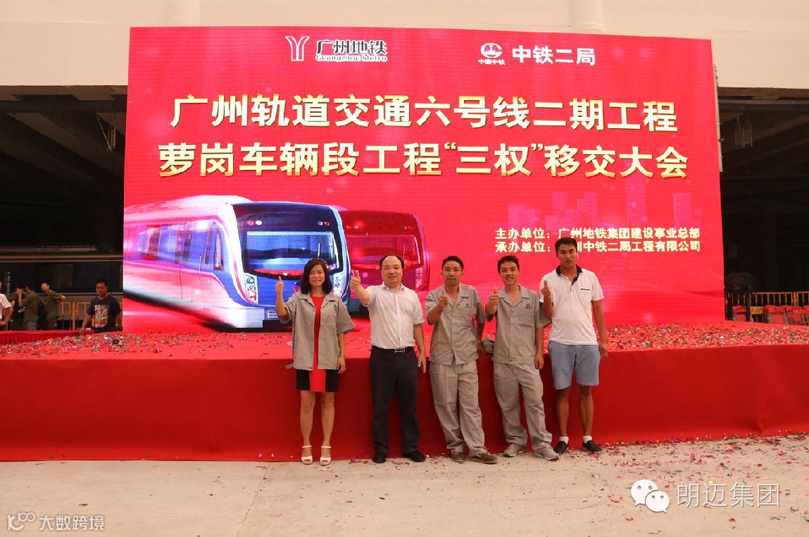 2016年9月26日,广州首个地铁上盖物业车辆段六号线二期萝岗站举行“三权”移交仪式,标志着该车辆段由建设阶段转向运营调试阶段。中铁二局董事长、党委书记邓元发、副总经理林原,广州地铁集团公司董事长、党委书记丁建隆、副总经理竺维彬、总工程师兼建设总部总经理张志良参加了此次会议并发言。朗迈公司作为该项目防水防腐工程的建设单位受邀参加了此次活动。