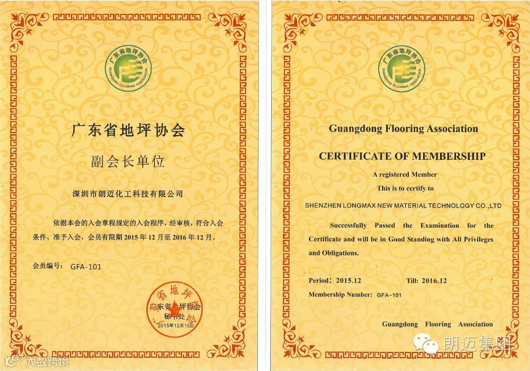 2016年11月29日下午,广东省地坪协会第一届二次会员代表大会2016年会暨2016年中国地坪行业“金砼奖”评选表彰大会在广州白云国际会议中心隆重召开。朗迈公司代表邱宗群参加了此次盛会,并被聘为广东省地坪协会技术专家委员会委员。无独有偶,朗迈武汉生产基地的负责人亦在2016年初荣获广东地坪协会技术专家的荣誉称号。这已不是朗迈公司第一次在地坪界获此殊荣:早在2015年,朗迈公司便被评为广东省地坪协会的副会长单位,总经理戴正辉被聘任为协会副会长。