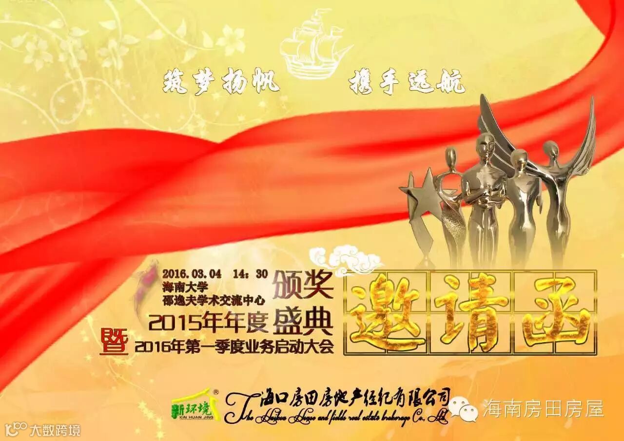 2016年的3月4号这一天,新环境海口房田房屋在美丽的海南大学举办了2015年年度颁奖盛典暨2016年第一季度业务启动大会。这是一个公司的盛会,也是属于海口房田房屋的盛会。