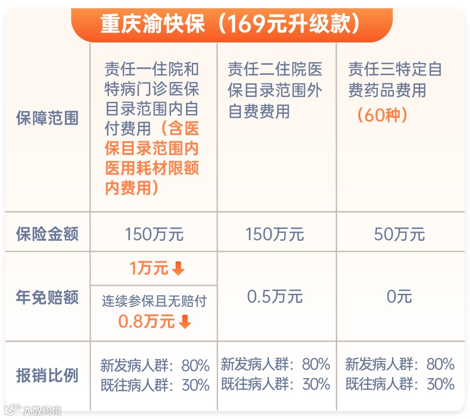 2025年“重庆渝快保”针对免赔额、特定自费药品、既往病定义进行升级优化: