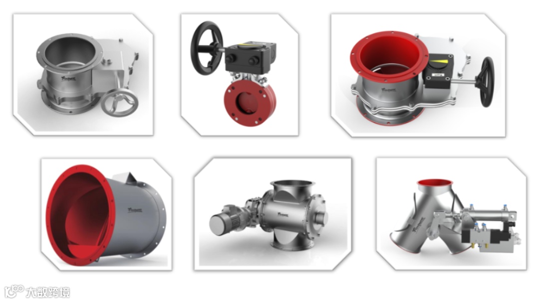 多叶调节阀、蝶阀、定风量阀、止回阀、三通调节阀、密闭式斜插板阀和余压阀