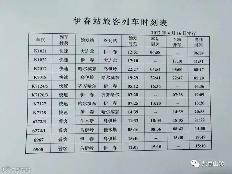 伊春列车时刻