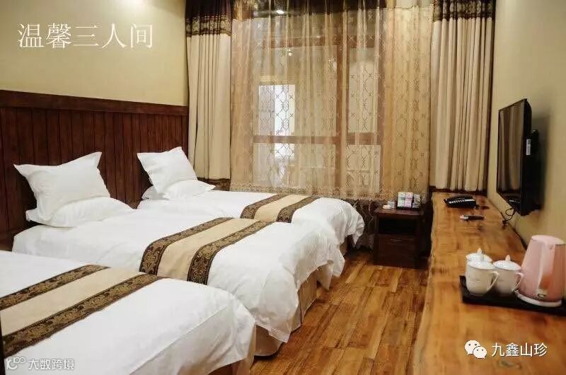 宾馆集住宿、餐饮、商务、会议、旅游休闲为一体,共有113间客房,多媒体会议室(可容纳200人)。宾馆内24小时热水、独立卫浴、光纤上网、数字电视、设有大型停车场、设有电梯、免费早餐。酒店自2016年开业以来,坚持以"诚信"为本,营造"让客人满意在九鑫"的服务氛围,通过健全的制度,严密的质量监控及严谨的培训,建立一支高素质、有热情的员工队伍,是您休闲娱乐的理想场所!