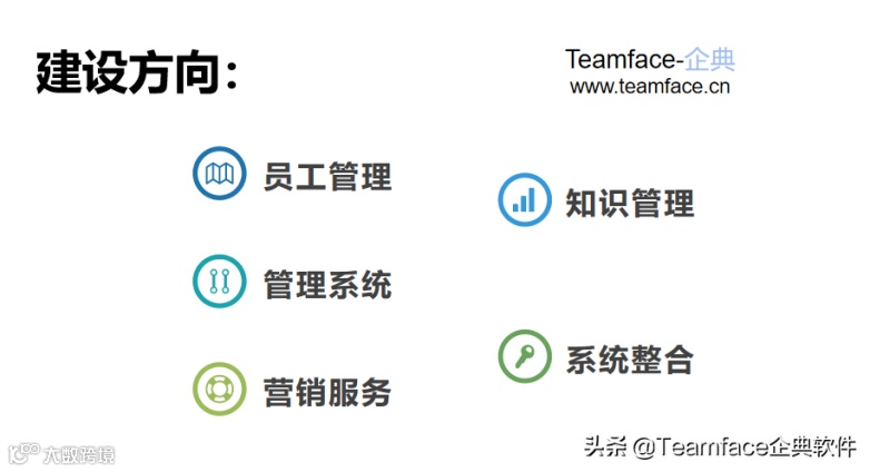 企业在建立企业数字化管理时一般通过员工管理、知识管理、管理系统、营销服务、系统整合这几个方面进行建设;