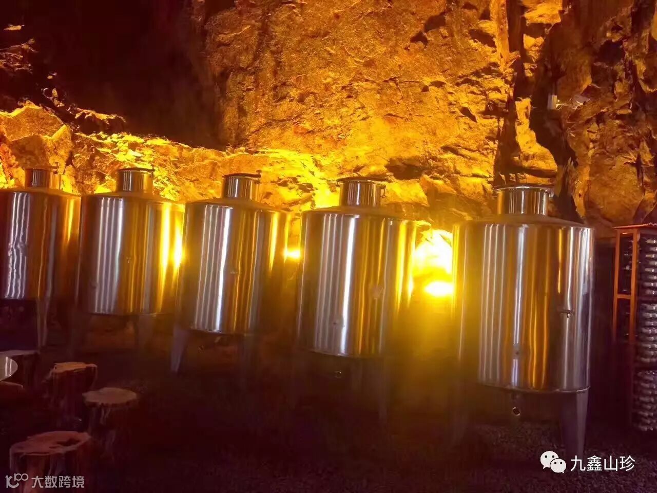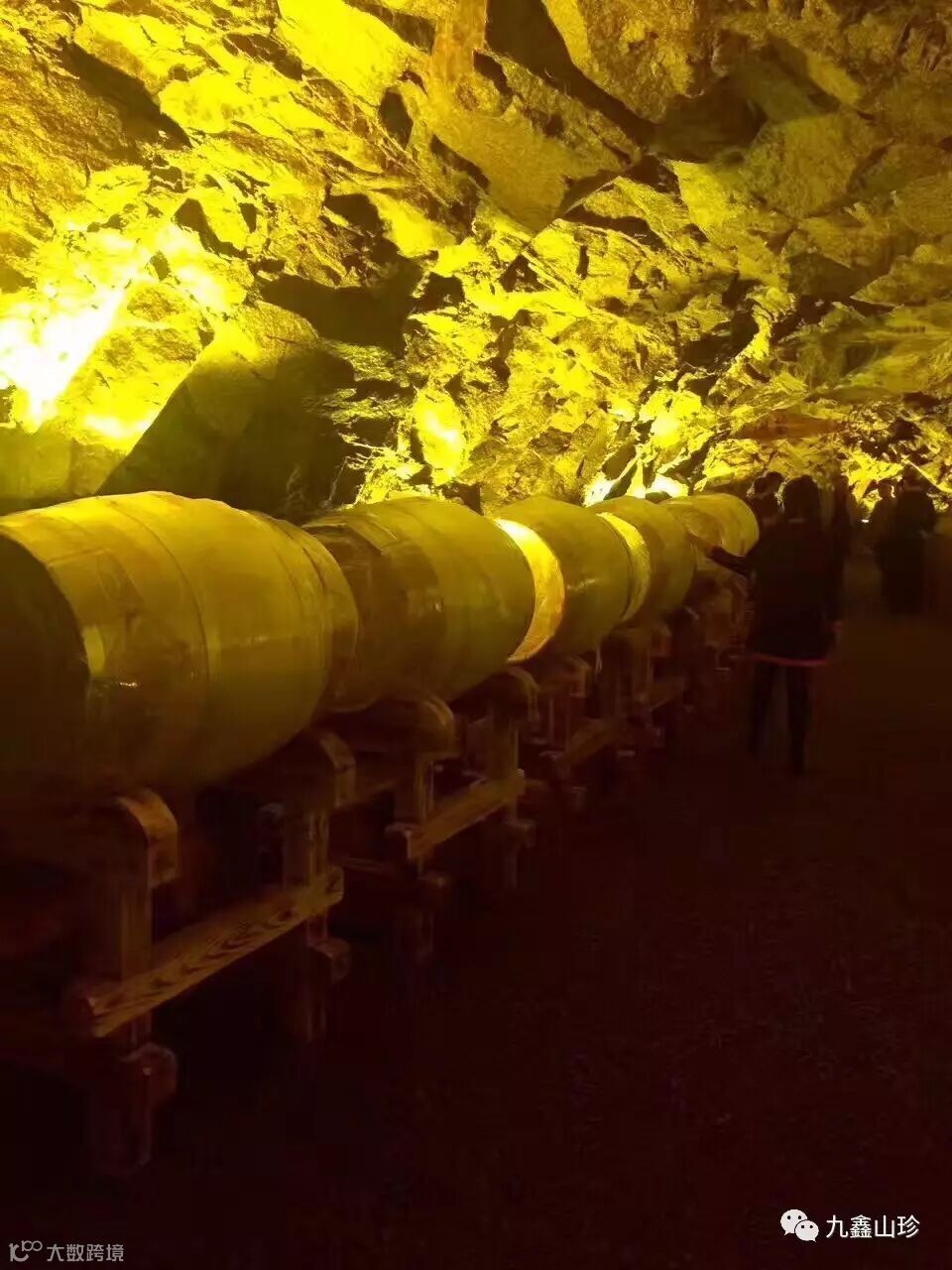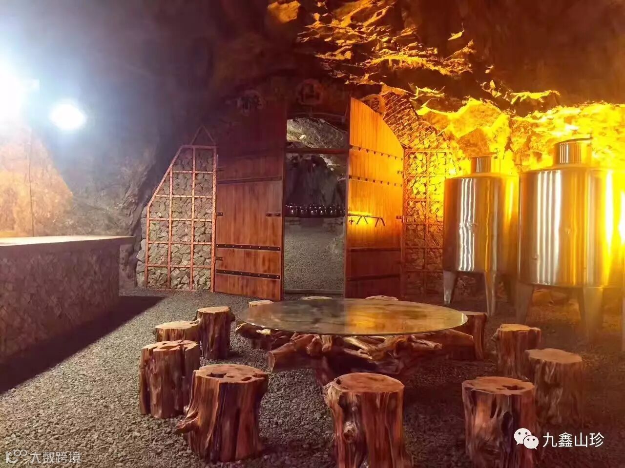 如今在区委区政府的帮助下,及社会各界的大力支持下,九鑫集团用先进的思想,开拓的眼界将现有的防空洞实现了华丽的转身,改造成了九鑫洞藏酒窖,同时也为游客提供一个可以品酒的纳凉地。洞内常年温度在4℃左右,湿度在60-70%,与酒窖需要的物理环境具有很好的融合性。洞内空气流通舒缓、恒温、十分适合微生物生长,其特殊的生态环境对净化酒体,增加酒体绵柔度,升华酒品品质等均有明显的效果。