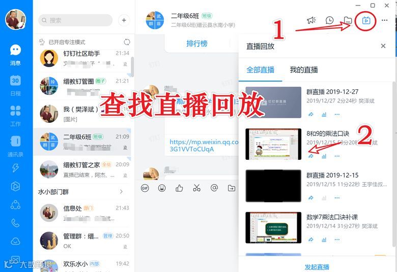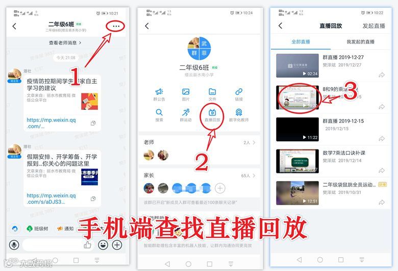 课上完之后,学生还可以随时在班级群中查找直播的视频进行回放。