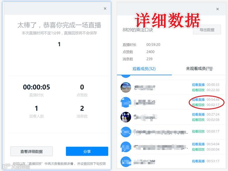 直播结束后,系统会自动统计直播时长和观看人数等,让你的每一场直播效果都可衡量。