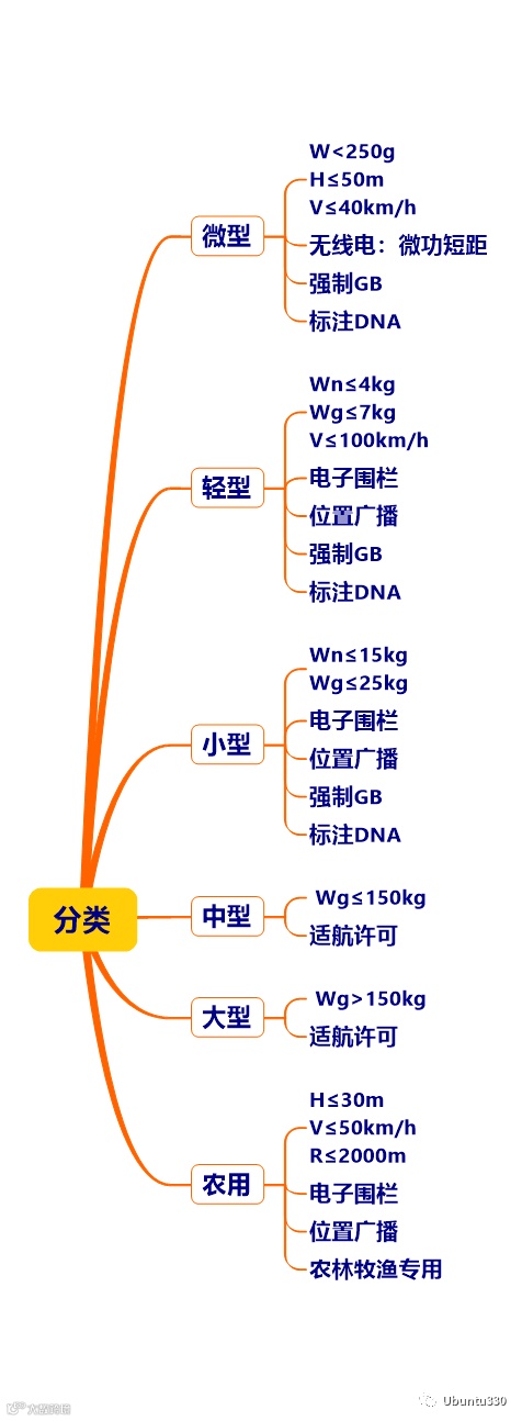 从分类上看,无人机的可靠性,微轻小类基本靠国标,中大类则需要适航管理;农林牧渔专用的,风险较小,被限定参数后单独区分出来。