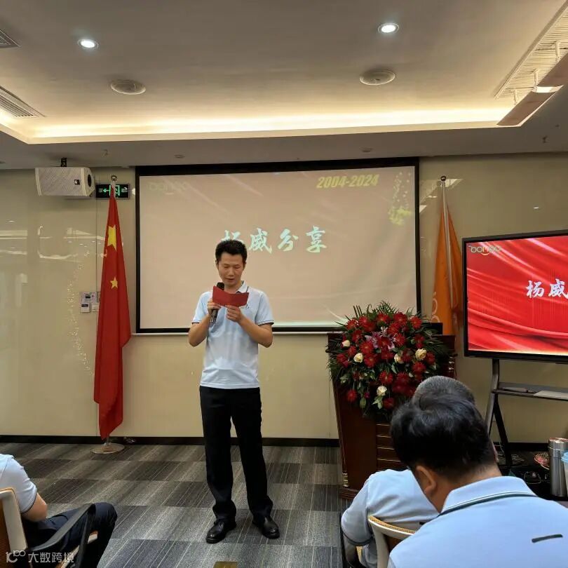 观看影片后,博皓大家长赖董致辞;接着是15-20周年员工分享。赖董犹如天生的演讲者,脱稿而出,真情流露;而周年员工也不遑多让,个个带好早已准备的手稿上台分享。我第一次发现,我们博皓大家庭中真是卧虎藏龙,有幽默的,有文艺的,有真情实感流露的,通过各种各样的方式来分享自己在博皓的经历,抒发内心的情感,比如出纳小姐姐说从几十平米的仓库到坐着大奔去买下现在办公楼,她说:以前是做公交车,现在坐上大奔了,但是有点头晕。真是有趣的灵魂,令人忍不住心生笑意。